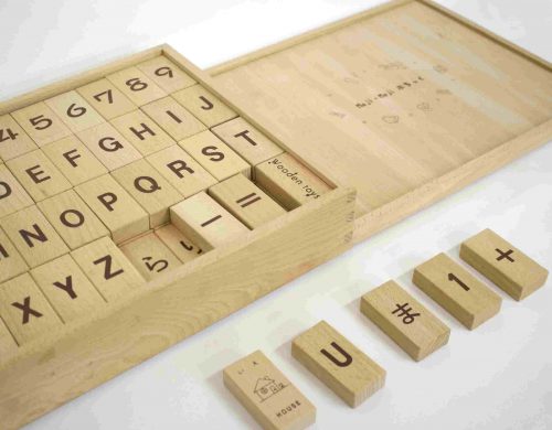 積木やドミノ、文字遊びなどずっと遊べる木製玩具になると思います。